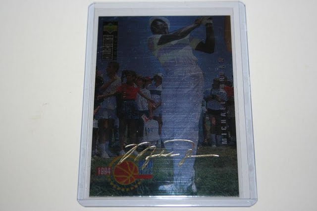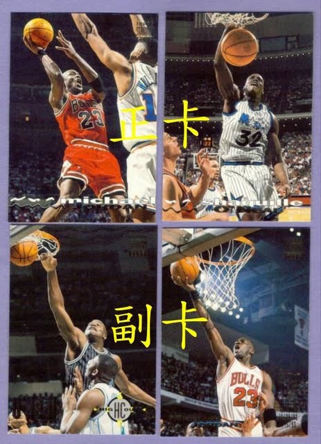 老闆幫楊同學牽線把卡都賣了現金,自己抽成賺爽爽,楊同學拆卡也就越來越兇了,你以為楊同學的狗屎運只有這樣嘛?你就錯了,隔年我國三的那年,出了一款Collector’s Choice的超平價卡,當時連7-11都有賣,賣散包我買了好多,但是那個卡的真正精髓不是在卡包裡,是在卡盒裡,那時每一盒卡都有一張JUMBO卡,就是大張的卡片放在盒子裡面,那個大張的卡片有簽名版本的,Jordan的簽名卡在6000美金左右,Hardaway的在500美金,而Shaw Kemp在300美金,我可愛的楊同學,拆三箱中兩張Jordan簽,Hardaway跟Kemp各一,真是夠OOXX了,這還不包含當年最紅的裡面的特卡”金簽”(註六),由於當時Jordan第一次退休,因此裡面還有Jordan Golf跟Jordan Baseball兩種版本,這兩個版本的金簽,也是天價級的,而楊同學也都有拆到,我再次吐血~~ 由此開始,籃球卡進入了戰國時代,不但系列越來越多,在設計上跟創意上更是多樣化,很榮幸的我有參與到這一段,我想這也是我對球卡熱愛真正的來源,也是它的魅力所在,下一次的連載將會清楚的跟大家分享這段歷史。