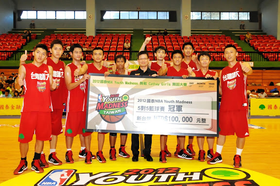 NBA與國泰金融集團共同主辦的2012國泰NBA Youth Madness全國總決賽27日在台北體育館圓滿落幕,5對5籃球賽,台師大在總決賽擊敗去年冠軍台科大登上王座。舞戰Cathay Girls舞蹈大賽部分,來自台北市立體育學院的TSC從全台六支實力最堅強的隊伍中脫穎而出,摘下今年冠軍。