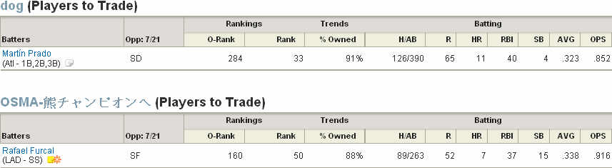 dog 和 osma 的交易 ( Martin Prado 換 Rafael Furcal )這一筆我沒意見,pass。 紐約客和osma的交易我反對,reject。