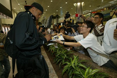 昨天整個晚上都守在遠東飯店,目的不是為了追星,因為就連眾星雲集的NBA明星周末,都已經看到有點膩了,金塊與溜馬並不算什麼,但是就是因為這是台灣第1次,很想把這歷史的見證烙印在腦海裡。