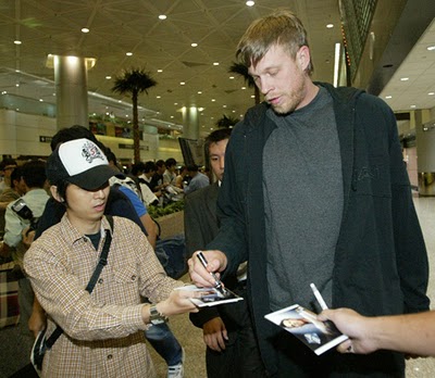 在台灣知名度不下於Anthony與Billups的Chris Andersen,沒有「抓頭髮」,整個頭髮塌陷在頭皮上,少了幾殺氣,卻多了幾分友善,告訴他:「你在台灣很紅!」Andersen笑笑沒有多說,可能想要自己感受吧,所以Andersen的球迷,請拿出你的熱情來感動他。