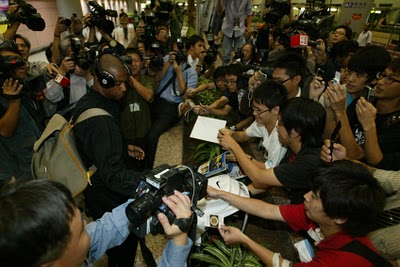 Granger似乎早已習慣媒體大陣仗,自己也手持數位攝影機一直拍,還跟記者說:「你們在拍我,我也在拍你們。」然後T.J. Ford也一樣,邊走邊拍,一點一滴記綠此次台北賽。