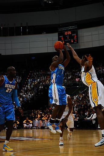 2009 NBA台北賽金塊vs.溜馬之戰,在華麗熱鬧、激情不捨中落幕,上季打進西區決賽纏鬥湖人的金塊調整並不好,104:126不敵上季沒有打進東區季後賽的溜馬,溜馬兩大主力前鋒Danny Granger、Troy Murphy用出色的手感和團隊防守,給金塊和台灣球迷上了一課。