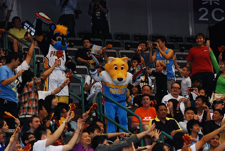 *跟現場球迷瘋在一起,大方送禮,NBA吉祥物玩的方式和創意,讓台北賽球迷非常開心。