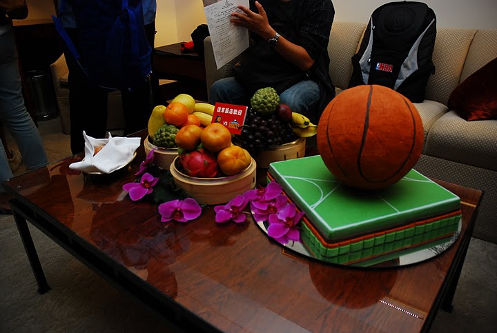 *遠東飯店特別製作籃球、球場蛋糕,以及搭配台灣珍貴的水果特產,做為迎賓佳禮。
