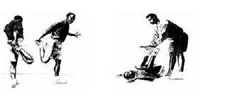 十一、禁區線上滑步:在禁區梯形做滑步的練習;面向禁區外側,雙手舉高、引導腳的腳尖朝前進方向,跟隨腳腳尖則朝面向。