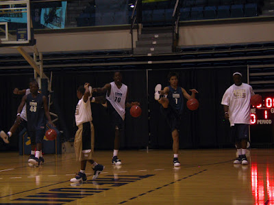 圖說:和張宗憲一起熱身的,左邊是Wake Forest大一前鋒Al-Farouq Aminu,右邊是奧克拉荷馬大學後衛Willie Warren,都是今年NCAA表現優異的新鮮人。