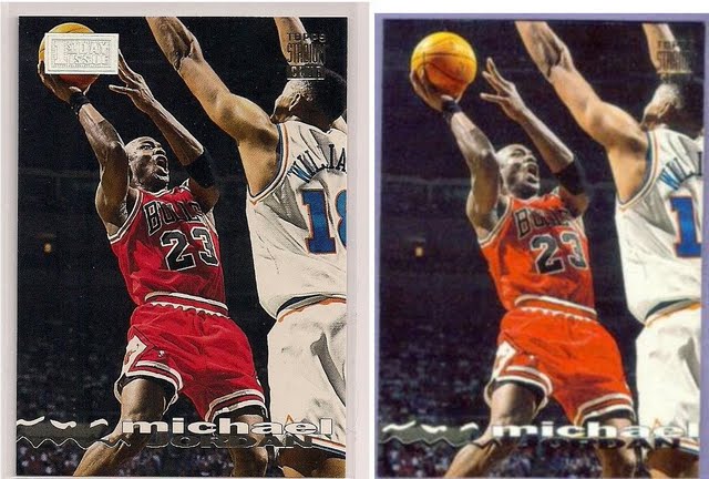 在我整個初中的階段,基本上就是一個看熱鬧居多的小鬼,因為我一個星期也只有100塊左右的零用錢,還是省吃儉用下來的,所以最多就是一個星期拆個一包卡碰碰運氣,大部分的時間我都是到店裡看人家拆卡,聽人家討論,以增加我自己對球卡的知識,那時候的球卡,有點像樂透因為你如果中到一張好卡那個價值真的很高很高的,記得我有一個楊同學,家裡算是比較好環境的,相對他的零用錢就很多,他拆的很兇,而且是拆盒的(真好野人,羨剎那時我們這些窮鬼),那時他一樣拆93-94年的TSC(Topps Stadium Club註一) S1跟S2,他不但銀彈充足運氣還特好,各中一和樂樂盒(註二),要知道當年的First Day Issue(註三)是天價卡,Jordan的正卡(註四)Beckett開3500美金,副卡(註五)