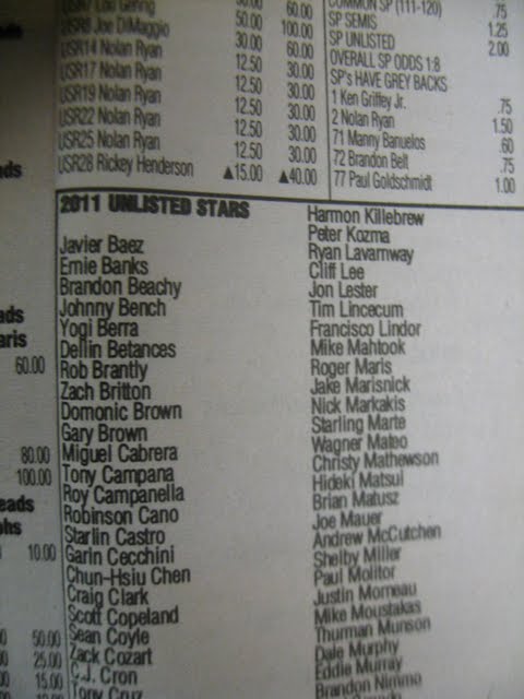 運動明星也是有分級的,在Beckett裡面就有這樣的清單告訴你,因為除了一些特別出名或是特別受歡迎的球員之外,其他的球員依照價格的等級分為,Unlisted stars不列價的明星跟Semistars半明星,這其實也是為了節省Beckett雜誌篇幅,也就是說你手上的卡如果是這兩個清單裡面的明星的話,將不會在Beckett的清單裡面,而是直接在上面的Unlisted Stars或是Semistars的價格裡找價格。