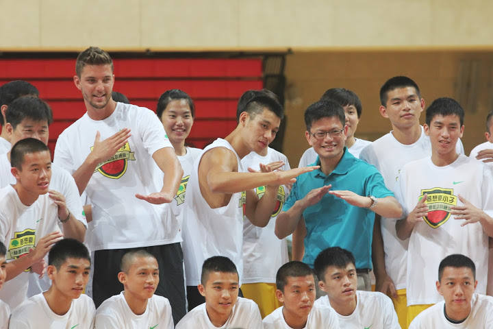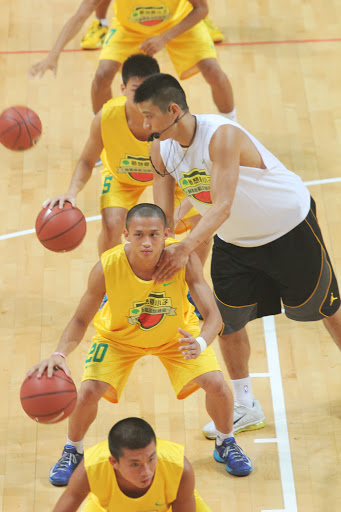 林書豪帶後衛,帕森斯帶前鋒,兩人各自獨立,專注執教籃球訓練營