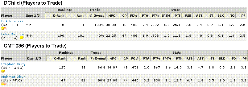 兩位球員所屬球隊也同時有 "因為即將到來的交易截止日"