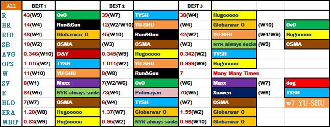 全壘打, 打點, 盜壘, OPS, 救援, 三振 高牆難越ㄚ...
