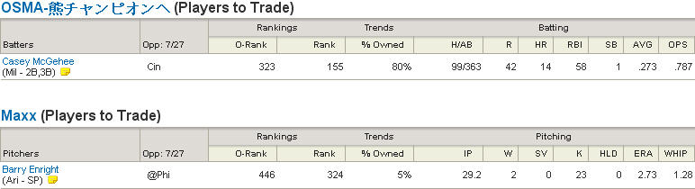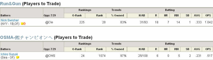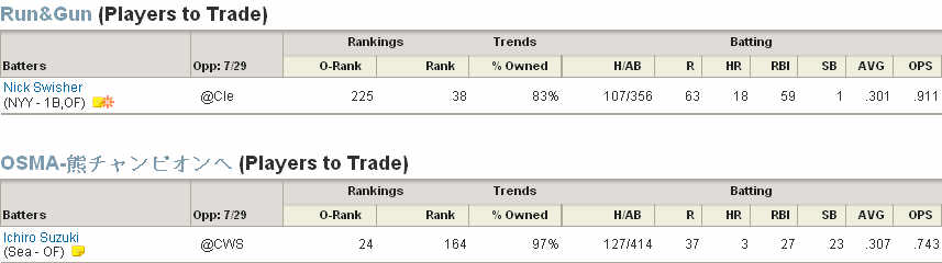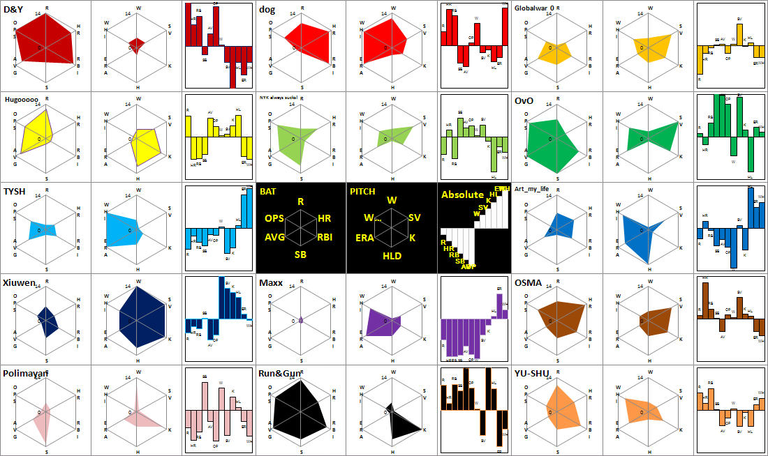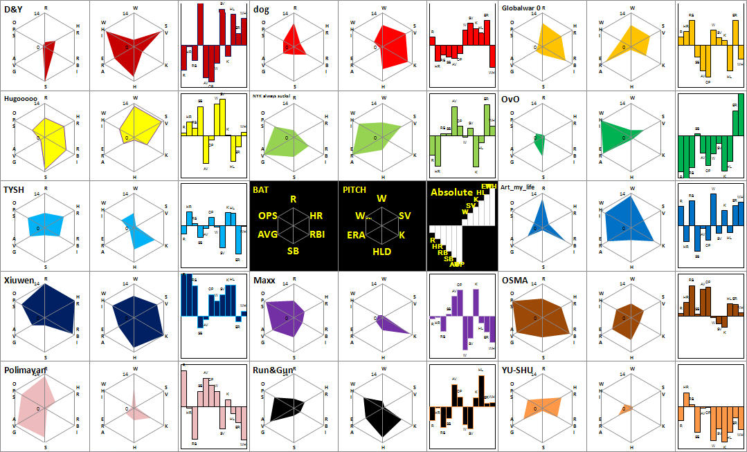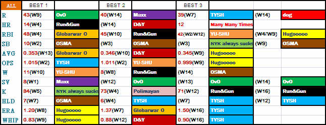 (現有的是Bat: R HR RBI SB AVG OPS Pitch: W SV K HLD ERA WHIP)