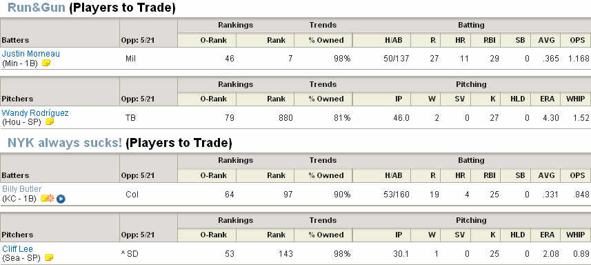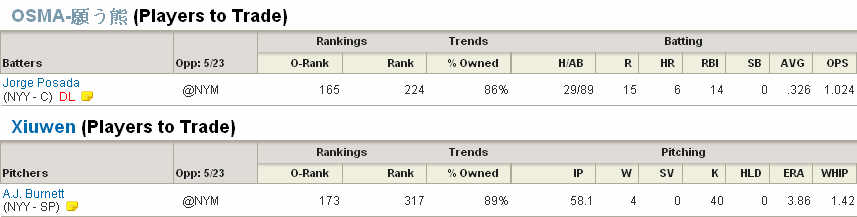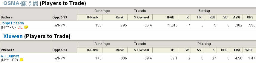 基本上跑轟隊是犧牲一些火力來換取A級的投手戰力, 而紐約隊則是靠著深厚的投手戰力來提升打線, 兩隊各取所需, 算是各不吃虧了...