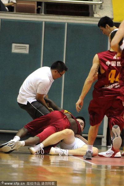 北京时间10月18日晚,在佛山队同澳洲虎队的友谊赛中,佛山队因不满对手最后的犯规行为与之发生冲突,进而演变为两支友谊赛球队之间的群殴。根据现场球迷的描述,双方抡起椅子相互追打,现场有球员脸上还被打出血,场面失控十分混乱。[详细]